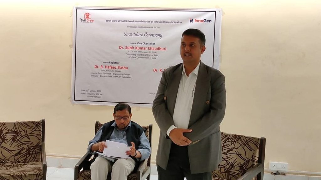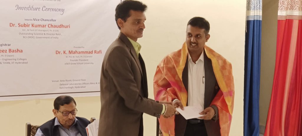 Dr. Subir Kumar Chaudhuri, Outstanding Scientist & Director Retd., Research Centre Imarat (RCI), Defence Research and Development Organization (DRDO) was appointed as Vice Chancellor and Prof. R. Hafeez Basha, an eminent academician and researcher as the Registrar for eSkill Grow Virtual University, Lewes, Delaware, United States